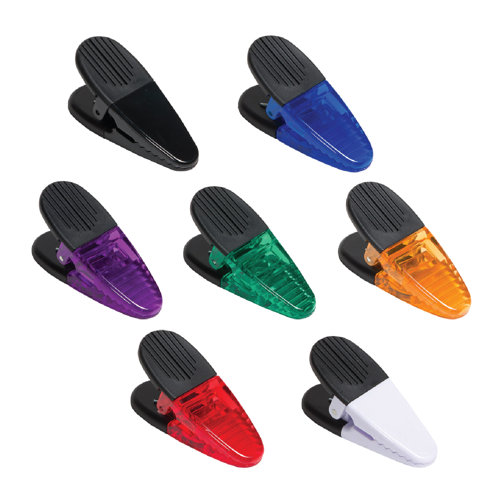 Spring-loaded clip with magnet that is offered in a variety of colors and sticks to almost any metal surface. Complies with Prop 65. 3.25″ L x 1.25″ W x 1.625″ H